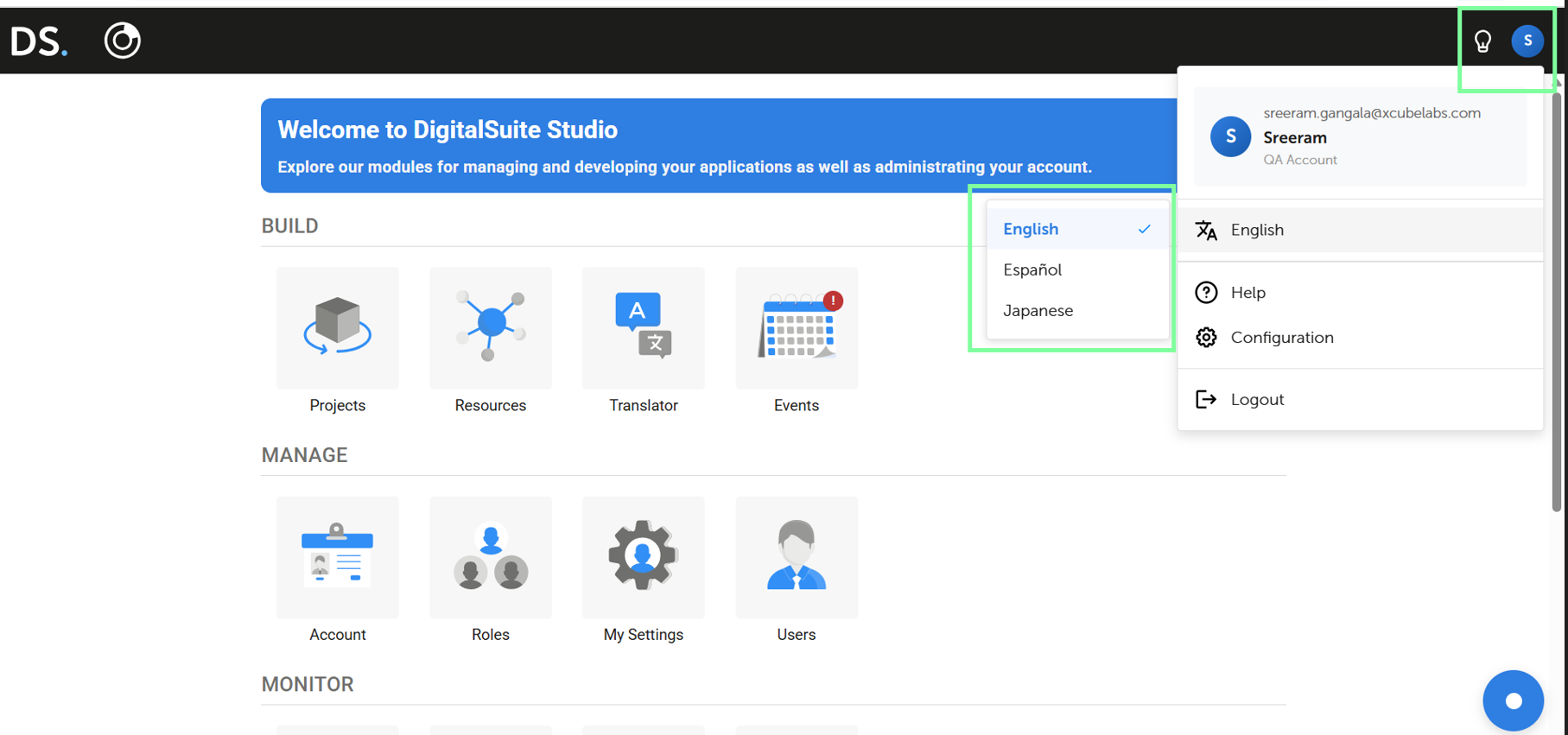 DigitalSuite also provides assistance to the application developers in localizing the applications for any of the supported languages through an App Translator portal application.